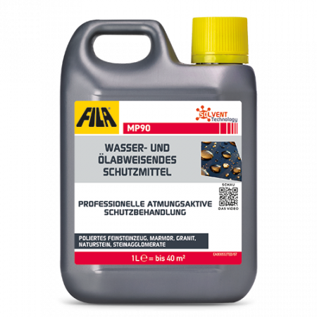 MP90 mit einem Pinsel gleichmäßig und ohne Unterbrechung auf die trockene und saubere Oberfläche auftragen, dabei auch die Fugen befeuchten.Vor dem vollständigen Trocknen des Produkts (ca. 10-15 Minuten) die Rückstände mit einem Mikrofasertuch, das mit dem Produkt getränkt ist, abreiben und entfernen. Dann die Fläche mit einem sauberen Lappen nachtrocknen.Um die Arbeiten zu beschleunigen, kann eine Einscheibenmaschine verwendet werden.Bei besonders saugfähigen Materialien das Produkt in zwei Aufträgen im Abstand von 8 Stunden anwenden.Die Oberfläche ist nach 12 Stunden begehbar, der wasser-und ölabweisende Schutz ist nach 24 Stunden wirksam.Für die normale Instandhaltung und Pflege: Verdünnte Lösung von CLEANER PRO (1:200).