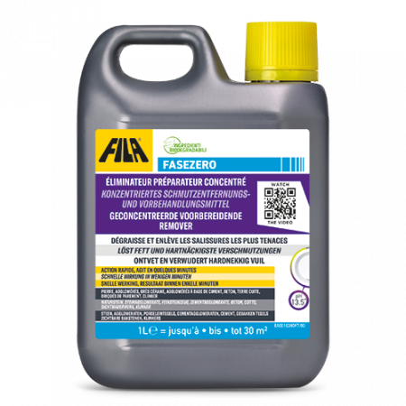 Nicht auf Marmor oder neuem Naturstein mit poliertem Finish und Holz verwenden. Berührung mit metallischen Oberflächen vermeiden (ggf. sofort abwaschen). Prüfen Sie immer die Wirkung vorab an einem kleinen Bereich. Auf Ziegel und Cotto empfiehlt sich eine neutralisierende Reinigung mit DETERDEK PRO nach dem Einsatz von FASEZERO.