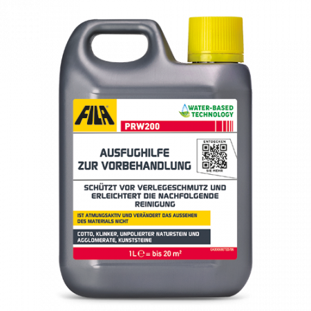 Vor Gebrauch schütteln. Die zu behandelnde Fläche muss staubfrei sein.Eine Schicht PRW200 mit Flachpinsel, Vliestuch oder einem anderen Auftragsgerät auftragen und gleichmäßig verteilen. Nur so viel auftragen, wie der Untergrund aufnimmt. Auch sorgfältig auf den Flanken des verlegten Materials aufbringen. Einen Tag nach dem Auftrag kann das Material verfugt werden. Wenn der Fugenmörtel ausgehärtet ist, die Grundreinigung mit dem für das betreffende Material am besten geeigneten Reiniger ausführen.Eine geeignete anschließende Schutzbehandlung auswählen, um den Schutz zu vervollständigen.REINIGUNG DER WERKZEUGE: Sofort nach dem Gebrauch mit Wasser reinigen.Für die normale Instandhaltung und Pflege: Verdünnte Lösung von CLEANER PRO (1:200).NUR ZUR GEWERBLICHEN VERWENDUNG:Bei Auftrag mit einem Sprühgerät oder mit Airless-System die im Sicherheitsdatenblatt angegebene persönliche Schutzausrüstung tragen.
