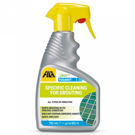 Spray FUGANET directly onto the grouting.Leave for a few minutes then scrub with an abrasive sponge or flat brush.Rinse after cleaning.If the grouting is very dirty, we recommend cleaning it thoroughly first with DETERDEK PRO diluted 1:10.