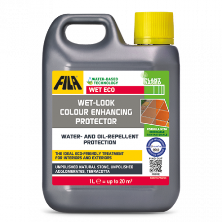 For surfaces with low absorbency (slate, Botticino or Carrara marble) we recommend diluting the product with water (1 litre of product to 1 litre of water). Do not use on polished surfaces. Do not apply the product externally if rain is forecast. The product cannot be applied on substrates subject to rising damp and in humid environments with standing water (showers, saunas, Turkish baths, etc.). If the product has been applied incorrectly or if thorough cleaning is required, remove WET ECO using NOPAINT STAR. Since there are so many different materials, before applying the product we recommend testing it on a small area of the surface to verify the tone-enhancing effect.