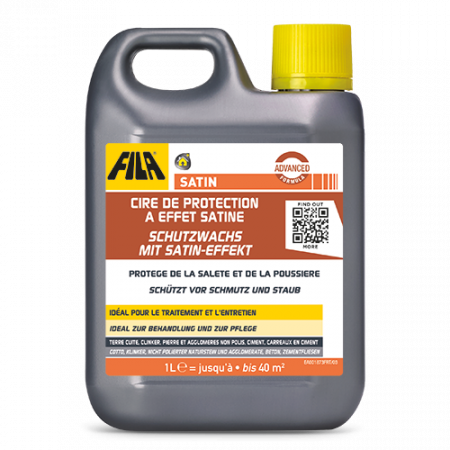 Sur des matériaux très absorbants, il est recommandé d'appliquer au préalable une couche de FOB XTREME ou W68. Attendre 24 heures avant d'appliquer SATIN.Renouvellement de la finition (tous les 2-3 mois) :après avoir nettoyé la surface avec une solution diluée de CLEANER PRO (1:200), appliquer SATIN en diluant 500 ml de produit dans 5 litres d'eau. Une fois sec, le sol est praticable.Restauration de la protection :décirer la surface avec le détergent PS87 PRO dilué 1:5. Rincer. Sur sol sec, appliquer la cire pure à l'aide d'un molleton ou autre applicateur. Pas besoin de polissage.NETTOYAGE DES OUTILS : nettoyer à l'eau immédiatement après utilisation.Pour l'entretien courant : solution diluée de CLEANER PRO (1:200)