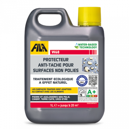 Sur la surface sèche et propre, appliquer avec un pinceau ou un chiffon type toison une couche de W68, de manière régulière, en imprégnant également les joints.Après 4 heures, appliquer une couche de cire de finition selon l'effet esthétique souhaité (MAT pour un effet naturel, pour un effet brillant utiliser LONGLIFE ou CLASSIC, si disponible à la vente).En cas de matériaux absorbants, une heure après la première couche de cire, appliquer une seconde couche de cire de renfort. Pour l'entretien à l’effet satiné, appliquer une couche de SATIN.Surfaces extérieures en terre cuite, pierre naturelle et ciment :Sur la surface sèche et propre, appliquer au pinceau ou avec un chiffon type toison 2 couches de suite W68 de manière régulière, en imprégnant également les joints.Éliminer les éventuels excès de produit non absorbé en tamponnant avec un chiffon en microfibre, avant que le produit ne sèche.NETTOYAGE DES OUTILS : nettoyer à l'eau immédiatement après utilisation.Pour l'entretien courant : solution diluée de CLEANER PRO (1:200)