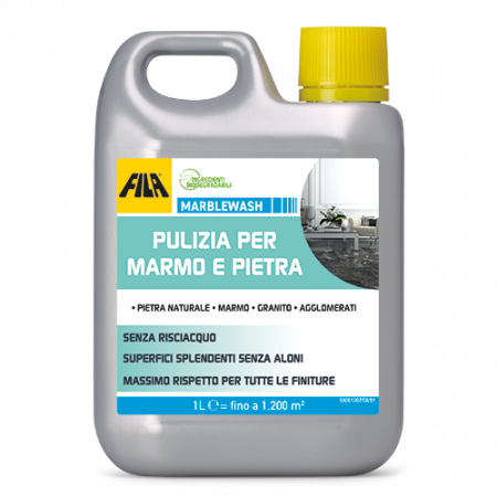 Diluire 3 tappi (circa 25ml) di MARBLEWASH in 5 litri d'acqua pulita tiepida. Passare la superficie con un panno ben strizzato, sciacquando di tanto in tanto in acqua pulita.