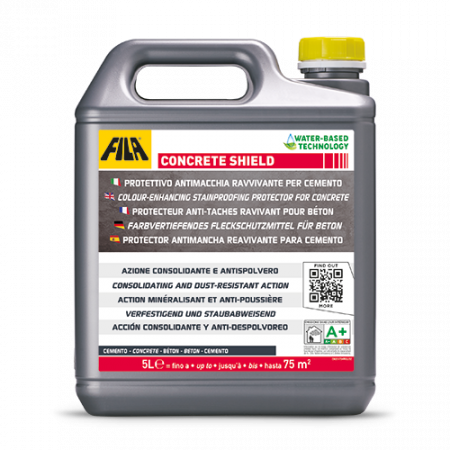 Shake before use. On a clean and dry surface, apply CONCRETE SHIELD uniformly using a flat paintbrush, fleece or roller.Once the first coat has dried (after 4 hours), in case of absorbent surfaces, apply a second coat of the product in the same manner.For indoor domestic environments:4 hours after the application of CONCRETE SHIELD, apply one coat of finishing wax to obtain the desired effect: MATT for a natural effect and LONGLIFE for a polished effect, if available for sale.For exteriors:the product should be applied annually to maintain the surface colour enhancement in optimal condition.For ordinary maintenance: use a diluted solution of CLEANER PRO (1:200)CLEANING OF TOOLS: clean with water after use.