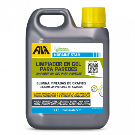 - Elimina as pinturas de grafitis em spray (acrílicos, alquídicos e nitrosintéticos): ideal em superfícies rugosas ou porosas (cimento, tijolos face á vista, pedra natural..) e sobre superfícies polidas (mármore, granito, travertino).