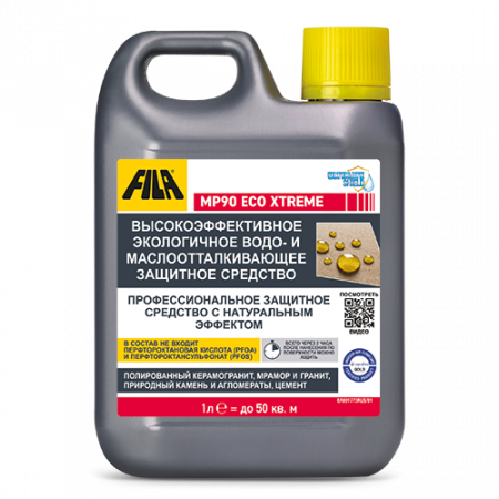 Для материалов с матовой отделкой (природного камня, терракоты, агломератов, цементной мозаики):Нанести средство MP90 ECO XTREME кистью или шерстяным валиком на чистую и сухую поверхность равномерными и сплошными мазками, в том числе, хорошо пропитывая швы.Перед высыханием средства излишки удаляют чистой ветошью. При обработке материалов, обладающих высоким уровнем абсорбции, наносить в два слоя с интервалом 20 минут между нанесениями.Для полированного керамогранита, природного камня, агломератов с глянцевой отделкой:Нанести средство MP90 ECO XTREME кистью или валиком на чистую и сухую поверхность, до полного пропитывания материала, в том числе, швов.Перед высыханием средства (оно занимает примерно 10-15 минут) массировать обрабатываемую поверхность тканью из микрофибры, пропитанной этим же средством, для улучшения его проникновения. Затем вытереть чистой ветошью. Для ускорения работ можно использовать однодисковую машину.Для завершения цикла финишной отделкой:На пористые материалы, такие как натуральный и восстановленный камень, агломерат и цементная плитка, уложенные внутри помещения, через 4 часа можно наносить финишный воск, в зависимости от материала и желаемого эффекта (MATT, SATIN, CLASSIC, LONGLIFE, если доступны в продаже).Хождение по поверхности возможно уже через 2 часа.Обработанная поверхность становится водо- и маслоотталкивающей через 24 часа.ОЧИСТКА ИНСТРУМЕНТОВ: сразу после использования промыть водой.Для повседневного ухода: разбавленный раствор CLEANER PRO (1:200)