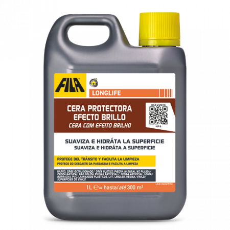 En pavimentos de barro y piedra porosa es necesaria la aplicación previa de una base de impermeabilizante a elegir según el material y la tonalidad deseada (ej. W68, FOB XTREME, WET ECO). Esperar 24 horas antes de aplicar LONGLIFE.Renovación del brillo (ej. cada 2/3 meses): con superficie limpia, aplicar LONGLIFE diluido en agua en proporción 1:10 (500 ml. en 5 litros de agua) con una bayeta u otro aplicador similar. Esperar el completo secado antes de transitar.Recuperación de la protección: con superficie limpia y seca (si necesario decapar antiguas capas de cera con PS87 PRO) aplicar LONGLIFE puro con bayeta u otro aplicador similar. Esperar el completo secado antes de transitar.LIMPIEZA DE LAS HERRAMIENTAS: limpiar con agua enseguida despúes del uso.Mantenimiento:Solución diluida de CLEANER PRO.
